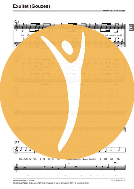 © 1990, Éditions de l’Abbaye de Sylvanès, ADF Bayard Musique, 23 rue de la Houssaye, 49410 St Laurent du Mottay