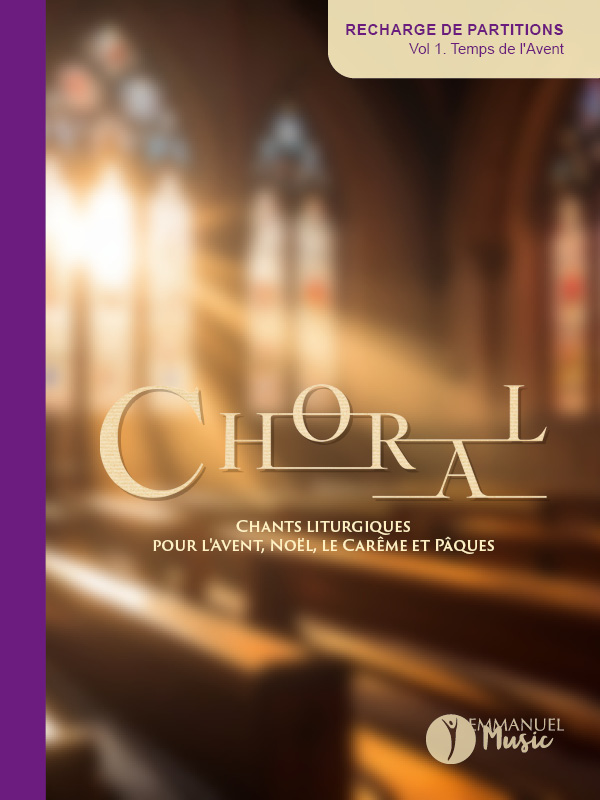 Cette recharge contient les partitions des chants de l’album Choral (Chants liturgiques pour l’Avent, Noël, le Carême et Pâques, Vol. 1 : Temps de l’Avent) d’Emmanuel Music